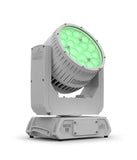 Fully featured IP66 RGBW LED yoke wash fixture with LED zone control, zoom, durable and lightweight aluminum body.