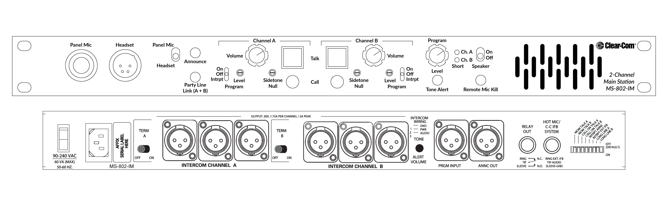 Clear-Com MS-802-IM, 2 Ch. M+I main station